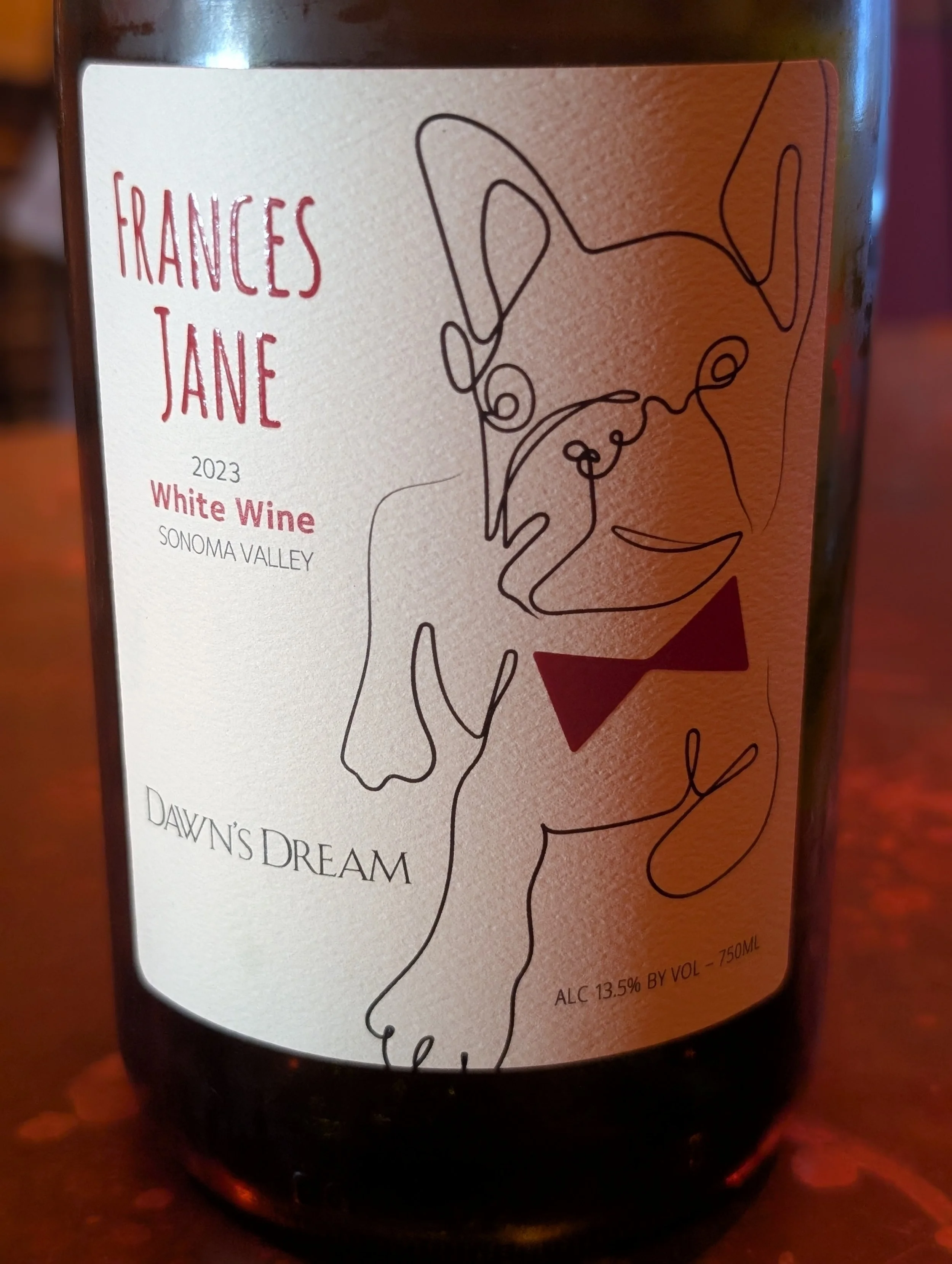 Dawn's Dream Frances Jane White Blend is our FEATURED WINE. Notes of lemon verbena, ripe apple, and saline. Dawn's Dream donates a portion of their sales to the Animal Friends Rescue Project.